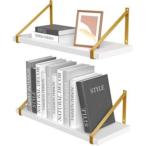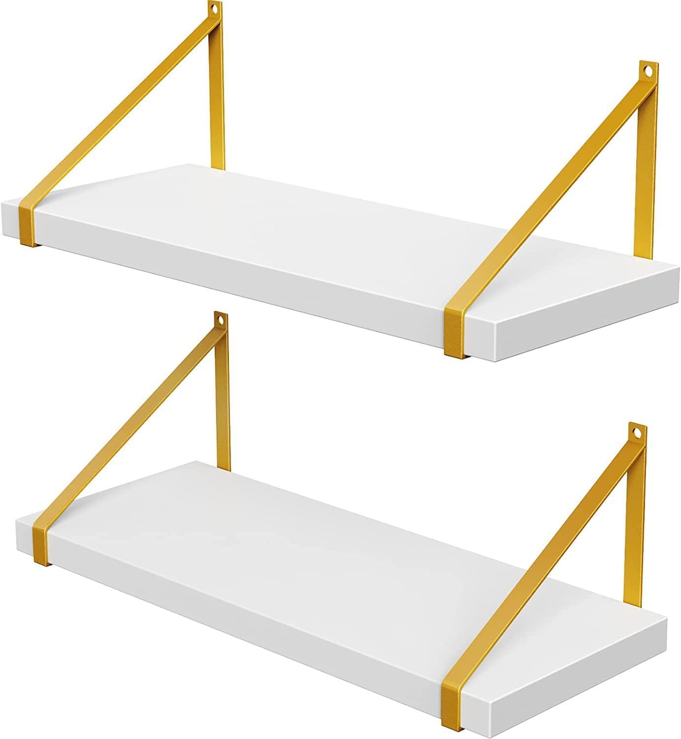2PC Floating Wall Shelves with Gold Brackets