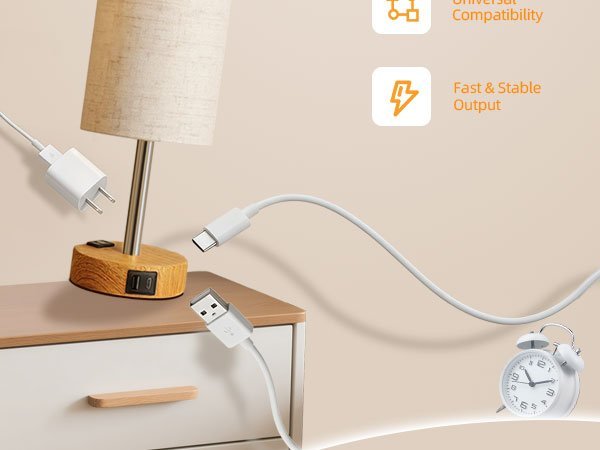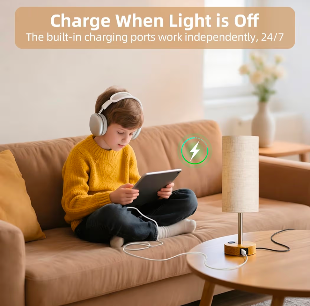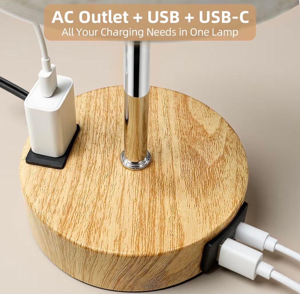 All-in-One Charging Table Lamp】This desk lamp features a built-in AC outlet, USB-A, and USB-C ports, allowing you to charge multiple devices like phones, tablets, and laptops simultaneously—whether the light is on or off. It’s your all-in-one power solution that declutters your nightstand and frees up outlets.