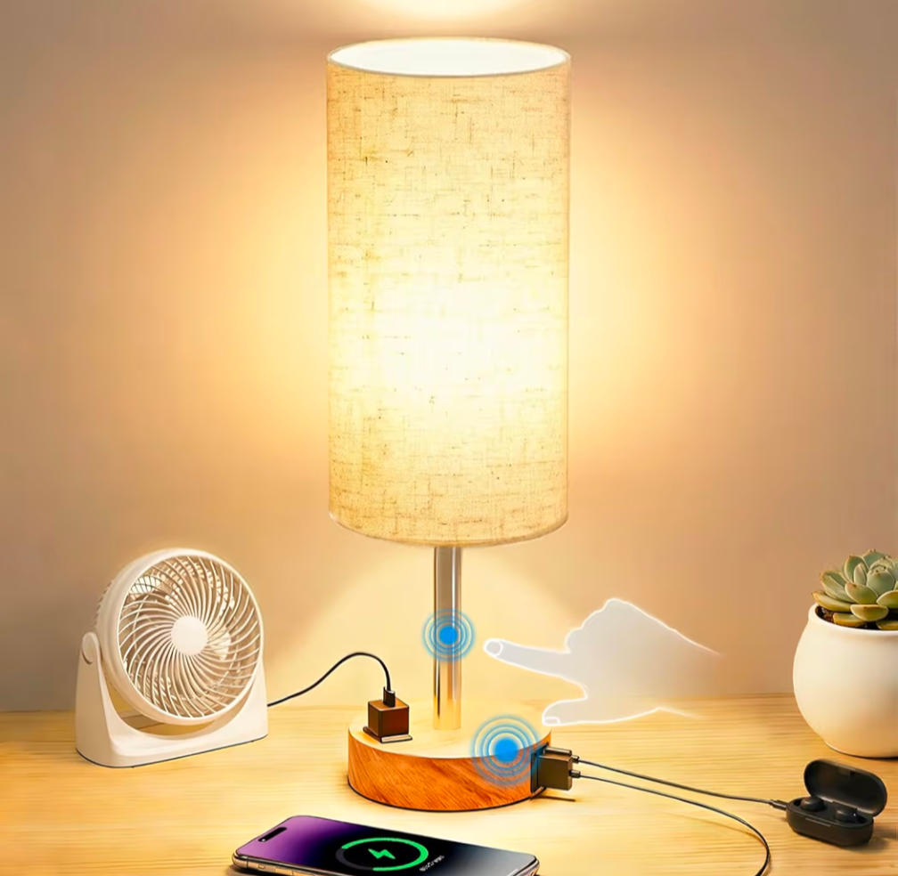 High-Sensitivity Touch, 3-Level Dimmable Nightstand Bedside Lamp with AC Outlet | USB | and USB-C.