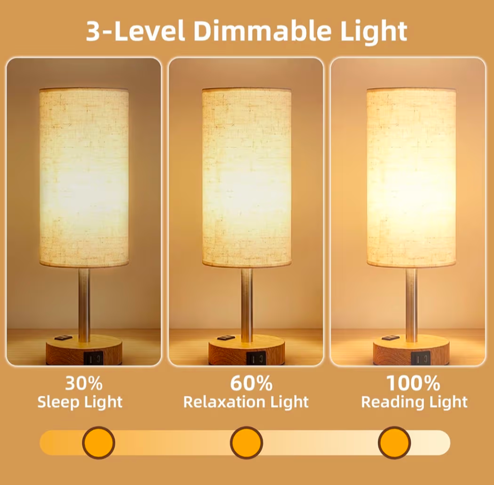 【3 Brightness Levels】One lamp for bedroom adapts to your entire evening. Soft glow for nighttime navigation or as a sleep aid, comfortable medium light for reading or seeing around the room, and bright, clear light for focused works. Easily find the right light for any moment.