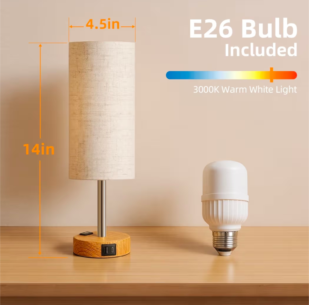 【Eye-Care LED Bulb Included】This table lamp comes with a high-quality 6W LED bulb that provides stable, flicker-free light. It eliminates glare and harshness at the source, offering gentle protection for your and your family’s eye health—ideal for prolonged reading or nighttime use.