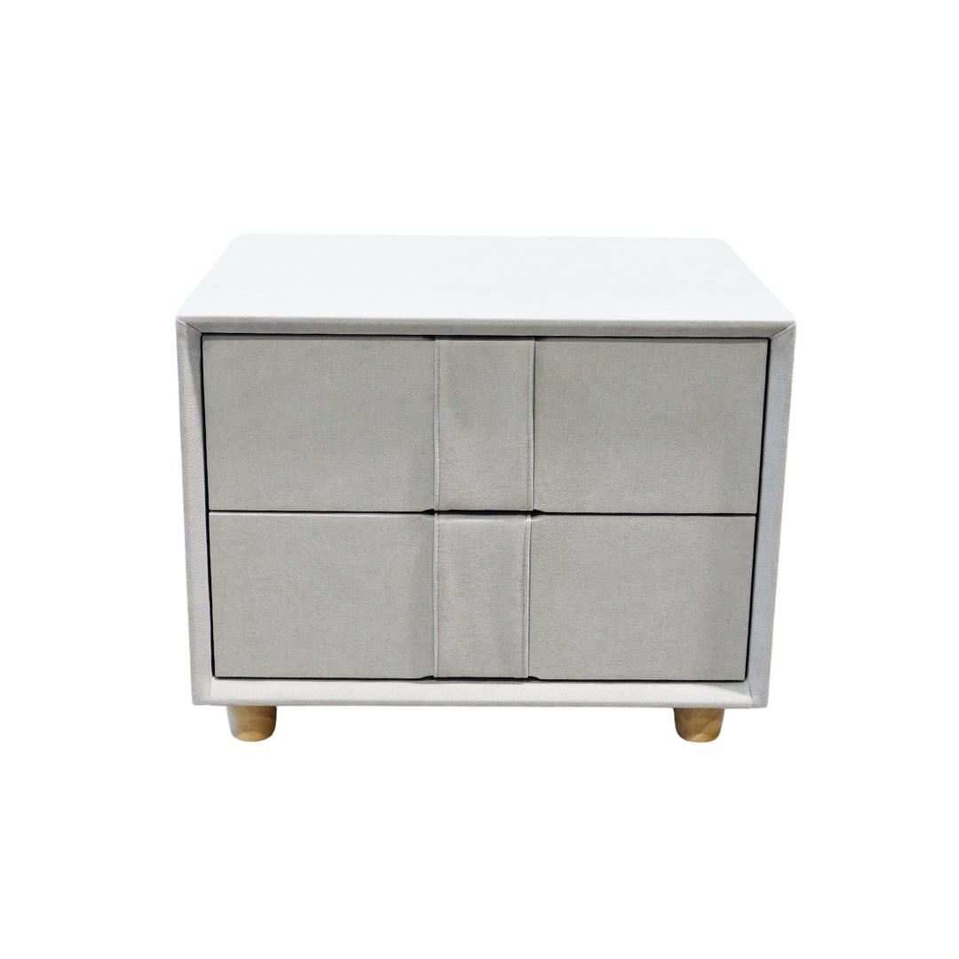 Modern Fabric Nightstand with 2 Drawers – Light Grey Bedroom Side Table