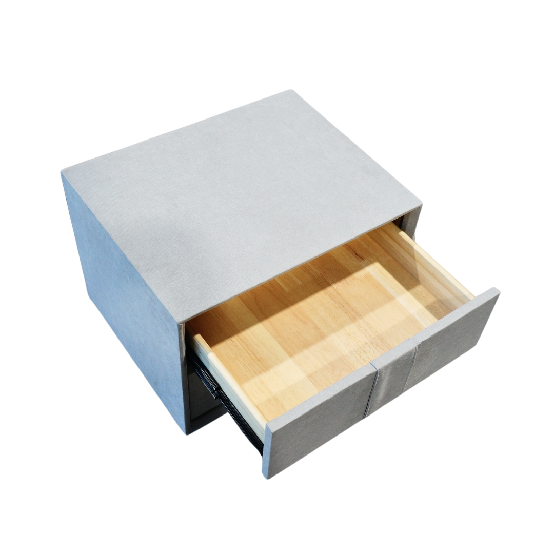 Featuring a sleek upholstered fabric finish and a minimalist invisible handle design, this nightstand adds a refined, contemporary look to any bedroom space.