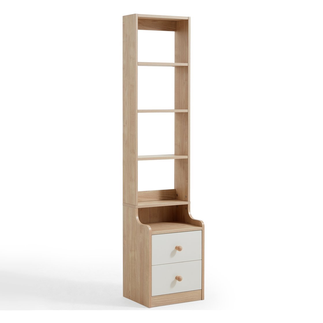 Elevate your space with the Shopro 4-Shelf Bookcase with Double Drawer Base, the perfect combination of style, function, and compact design. Crafted from durable melamine board and rubber wood, this tall shelving unit features a modern white and natural oak two-tone finish that brightens any room.