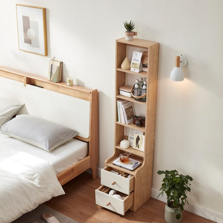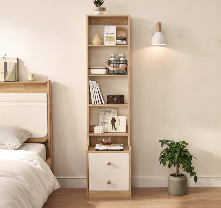 With four open shelves, you can display books, décor, or essentials, while two smooth-glide drawers keep smaller items neatly organized. Its slim and sturdy design maximizes vertical storage without taking up extra floor space, making it ideal for bedrooms, living rooms, or offices.