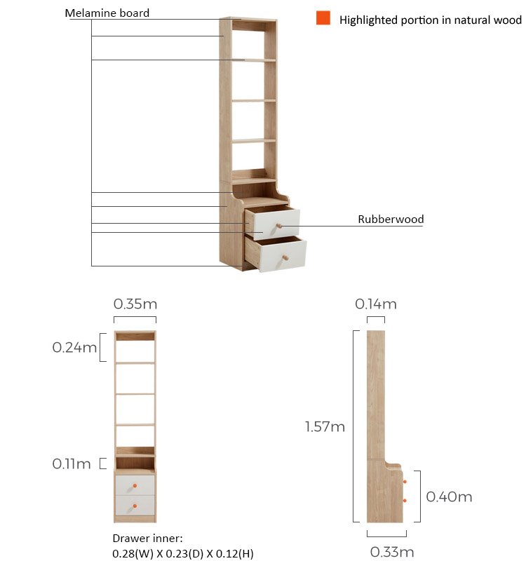 Weight Capacity: 3kg per shelf, 2kg per drawer