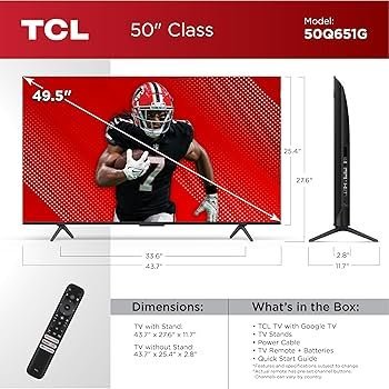 Upgrade your viewing experience with the TCL 50″ Q6-Series QLED Smart TV, featuring stunning 4K UHD resolution, HDR support, and Google TV integration. Enjoy lifelike colors, incredible contrast, and smooth motion — perfect for movies, sports, gaming, and streaming your favorite shows