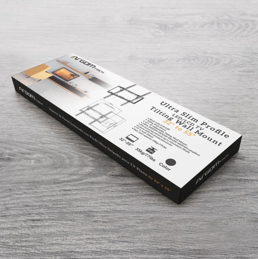 Secure your TV with this heavy-duty 32”–55” Tilting Wall Mount, designed for a clean, low-profile finish. It offers smooth tilt adjustment up to -8° to reduce glare, an open-frame design for easy cable management, and full VESA compatibility up to 400×400. Perfect for bedrooms, living rooms, offices, and commercial installations.