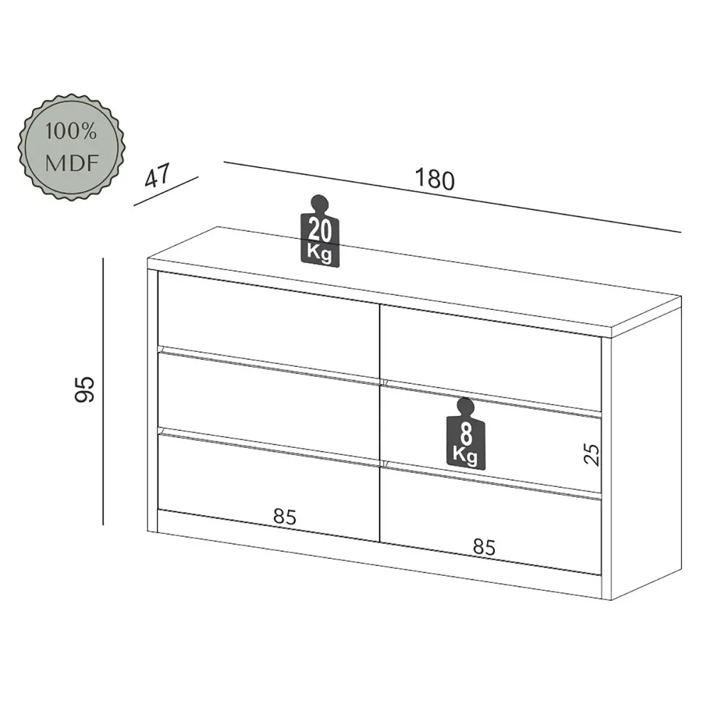 Designed for function and beauty, the six spacious drawers provide ample storage for clothes, linens, or accessories while maintaining a clean, organized look. Its balanced color contrast makes it ideal for bedrooms, guest rooms, or living areas that need a refined touch.